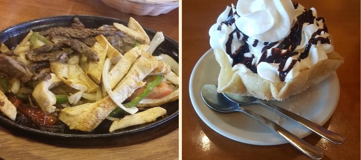 Don't miss the Fajitas, especially the Famous Sizzling Platter. The Taquitos and Chicken Quesadilla are crowd favorites. For dessert, try the Fried Ice Cream or Flan.